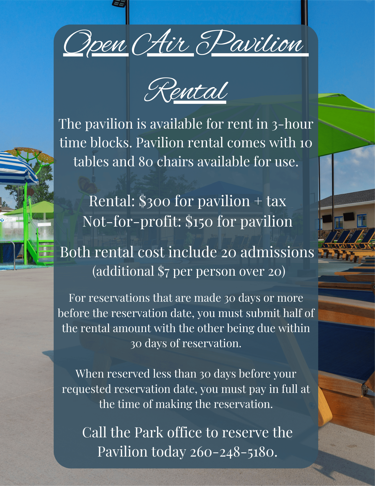 For reservations that are made 30 days or more before the reservation date, you must submit half of the rental amount with the other being due within 30 days of reservation. When reserved less than 30 days before your requested reservation date, you must pay in full at the time of making the reservation.
